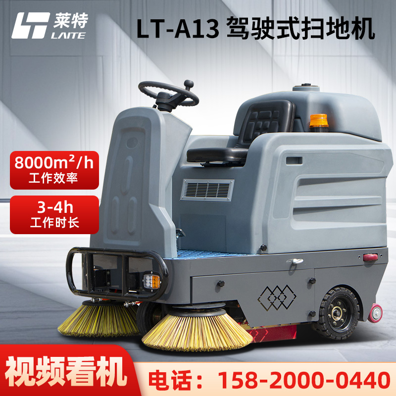 LT-A13型,小型敞篷驾驶式扫地车,清扫宽度1250mm,工作时间2-3小时,工作效率:3000-5000㎡/h,采用的是大品牌铅酸免维护电池。应用场景:工厂车间的过道、小区内较窄的道路、学校、公园等清洁面积在3000平米以内的场地。