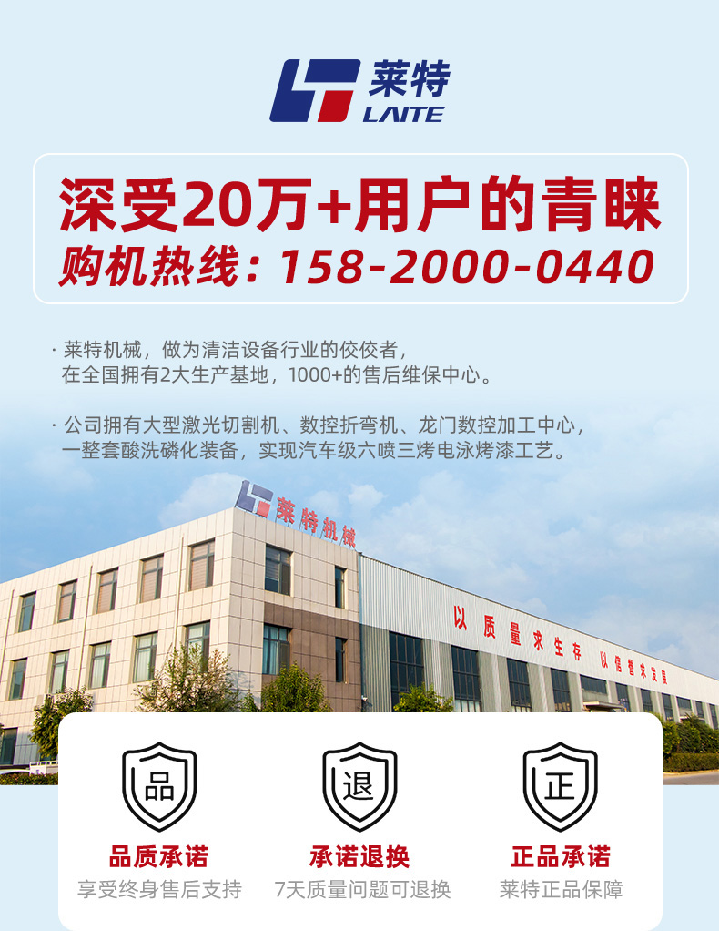 莱特LT-S26型全封闭驾驶式扫地车,清扫宽度2200mm,满电工作时间为4-6小时,工作效率:12000-16000㎡/h,采用的是大品牌铅酸免维护电池。应用场景为:厂区、车间、公园、街道、物业小区、地下车库、停车场、充电站、加油站、码头、学校、机场等区域。